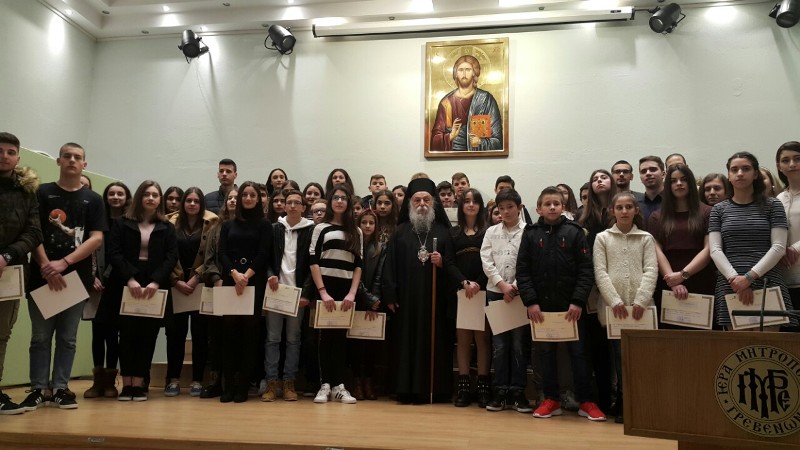 Μετά το πέρας της Θείας Λειτουργίας, ο Σεβασμιώτατος Μητροπολίτης μας, ως Πρόεδρος των Κοινωφελών Ιδρυμάτων «Κωνσταντίνου & Μαργαρίτη Βρέντζιου» και «Νικολάου & Κούκας Κωνσταντινίδη», προέστη στην τελετή βραβεύσεως των πρωτευσάντων μαθητών των Δημοτικών Σχολείων, των Γυμνασίων και των Λυκείων του Νομού Γρεβενών, σχολικού έτους 2017-2018, η οποία πραγματοποιήθηκε στο Πνευματικό Κέντρο της Ιεράς Μητροπόλεως Γρεβενών.