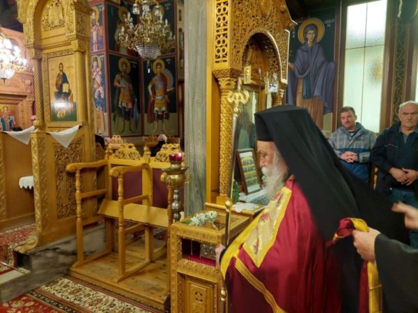 Ανήμερα της εορτής, ο Σεβασμιώτατος κ. Δαυίδ λειτούργησε στον πανηγυρίζοντα ναό του χωριού. Στο κήρυγμά του προς τους πιστούς μίλησε για το νόημα της θυσίας του Νεομάρτυρος και μάλιστα για την επικαιρότητά του για την εποχή μας.