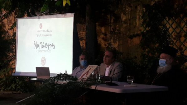 23/09/2021 23/09/2021 Στον αύλειο χώρο της Αγιορειτικής Εστίας, στην Θεσσαλονίκη, πραγματοποιήθηκε η παρουσίαση του εικονογραφημένου παιδικού βιβλίου «Ο Άη Γιώργης ο Φουστανελάς», που εξέδωσε η Ιερά Μητρόπολη Γρεβενών στα πλαίσια του εορτασμού των 200 ετών από την έναρξη της Ελληνικής Επαναστάσεως. Έχοντας οργανώσει την υπέροχη έκθεση με θέμα τους Νεομάρτυρες που θα διαρκέσει για λίγες ημέρες ακόμη,...