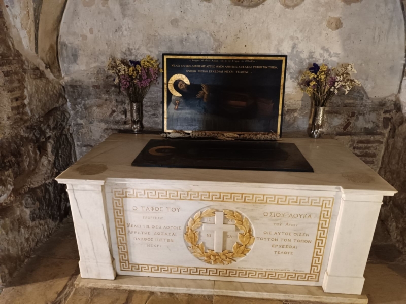 Ο π. Εφραίμ τα είχε όλα ρυθμίσει στην εντέλεια, ο π. Σπυρίδων μας μίλησε φωτισμένα, ο π. Σεραφείμ μας γνώρισε τον τοπικό μεγάλο άγιο, τον Όσιο Λουκά, οι π. Μιχαήλ και π. Κοσμάς μας υποδέχτηκαν στον πανηγυρικό Εσπερινό, η γερόντισσα Ανθούσα και καλωσόρισε πρόσχαρα στο μοναστήρι της …