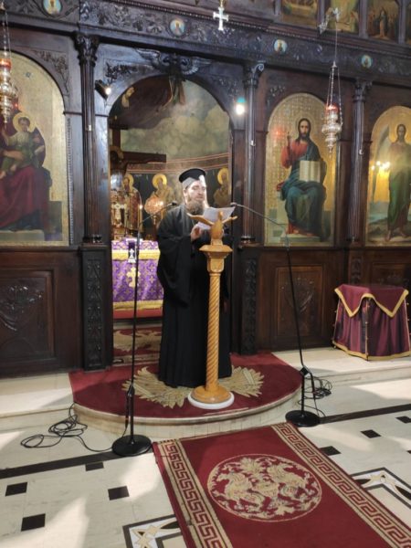 Χοροστάτησε ο Μητροπολίτης Γρεβενών κ. Δαβίδ, ο οποίος μίλησε για τον πνευματικό αγώνα στον οποίο καλούμαστε και διάβασε και την σχετική ευχή της συγχωρέσεως.