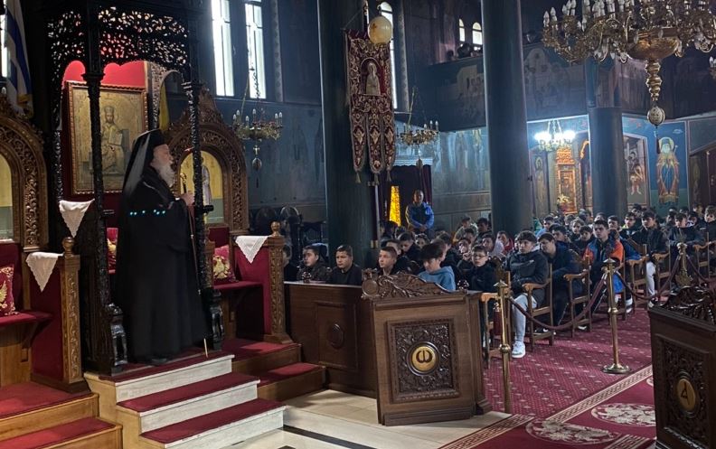 “Συμμετέχω και όχι απλά παρακολουθώ. Αυτό είναι το μυστικό της παρουσίας μας σε κάθε Θεία Λειτουργία…”. Με αυτά τα λόγια υποδέχτηκε ο Σεβασμιώτατος Μητροπολίτης Γρεβενών κ. Δαβίδ τους μαθητές και καθηγητές του 1ου Γυμνασίου της πόλης των Γρεβενών στην Προηγιασμένη Θεία Λειτουργία που τελέστηκε την περασμένη Δευτέρα.