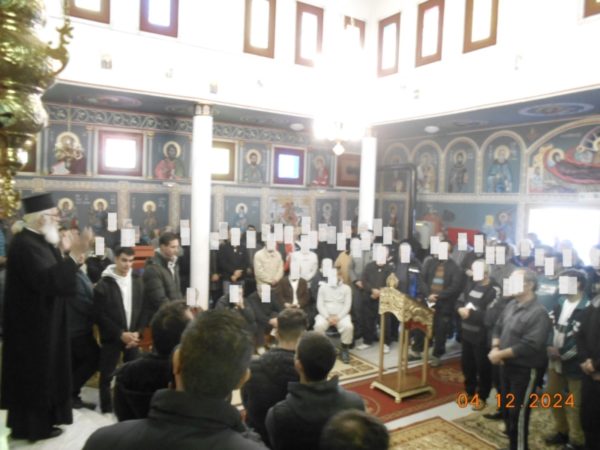 Η ομάδα φοιτητών της χριστιανικής αδελφότητας «Απολύτρωση» με επικεφαλής τον ιερέα τους π. Μιχαήλ Κόνια, μαζί με κυρίες από την αδελφότητα της δικής μας «Αγίας Βαρβάρας» συμμετείχαν στην συνάντηση κατηχητικού των κρατουμένων, προσφέροντας γλυκίσματα, αρκετά είδη πρώτης ανάγκης, τραγούδια, μα κυρίως μία ζεστή καρδιά, τέτοια που πηγάζει από την φάτνη του νεογέννητου Θείου Βρέφους.