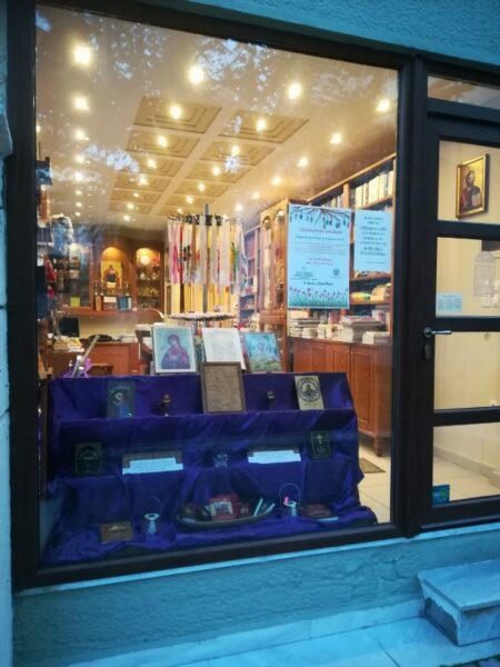 Στα πένθιμα ντύθηκε το «Αναλόγιον», το βιβλιοπωλείο της Ιεράς Μητροπόλεως Γρεβενών συμμετέχοντας με αυτό τον τρόπο στην Εβδομάδα των Παθών. Χαρακτηριστικές είναι οι φωτογραφίες, όπου απεικονίζονται και ορισμένα βιβλία- πασχαλινές προτάσεις του εν λόγω βιβλιοπωλείου.