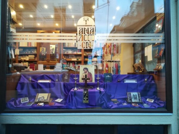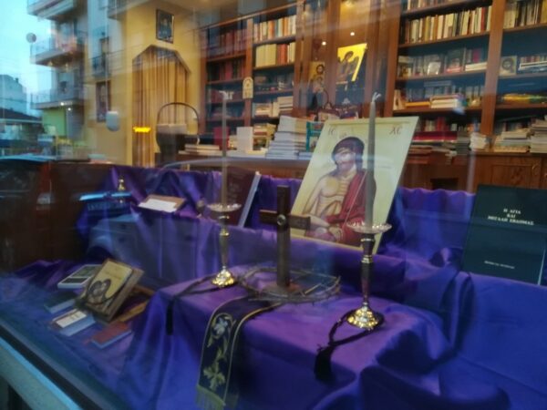 Στα πένθιμα ντύθηκε το «Αναλόγιον», το βιβλιοπωλείο της Ιεράς Μητροπόλεως Γρεβενών συμμετέχοντας με αυτό τον τρόπο στην Εβδομάδα των Παθών. Χαρακτηριστικές είναι οι φωτογραφίες, όπου απεικονίζονται και ορισμένα βιβλία- πασχαλινές προτάσεις του εν λόγω βιβλιοπωλείου.