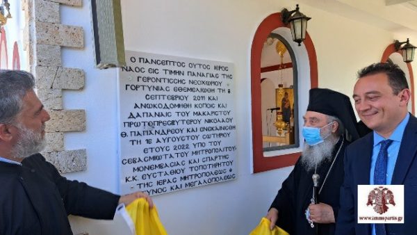Τα εγκαίνια του Ιερού Ναού Παναγίας της Γερόντισσας στο Νεοχώρι Γορτυνίας τέλεσε ο Σεβασμιώτατος Μητροπολίτης Μονεμβασίας και Σπάρτης κ. Ευστάθιος την Δευτέρα 16 Αυγούστου 2022, στο πλαίσιο της Τοποτηρητείας του στην Ιερά Μητρόπολη Γόρτυνος και Μεγαλοπόλεως.