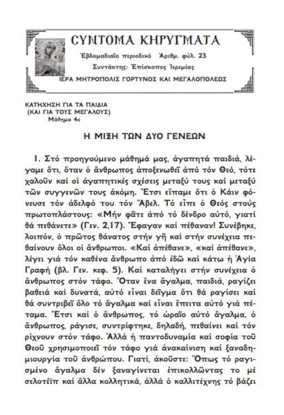 ΚΑΤΗΧΗΣΗ για παιδιά και για μεγάλους δημοσιεύει ο Σεβασμιώτατος Μητροπολίτης Γόρτυνος και Μεγαλοπόλεως κ. Ιερεμίας (Μάθημα 4ο), υπό το θέμα: “Η ΜΙΞΗ ΤΩΝ ΔΥΟ ΓΕΝΕΩΝ”.