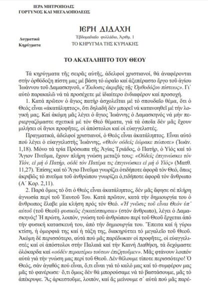 ΔΙΑΒΑΣΤΕ ΕΔΩ την ΙΕΡΗ ΔΙΔΑΧΗ, Ἑβδομαδιαῖο φυλλάδιο, Ἀριθμ. 1 (δημοσίευση 29 Αυγούστου 2019) εκ μέρους του Σεβασμιωτάτου Μητροπολίτου Γόρτυνος και Μεγαλοπόλεως, κ. Ιερεμίου.