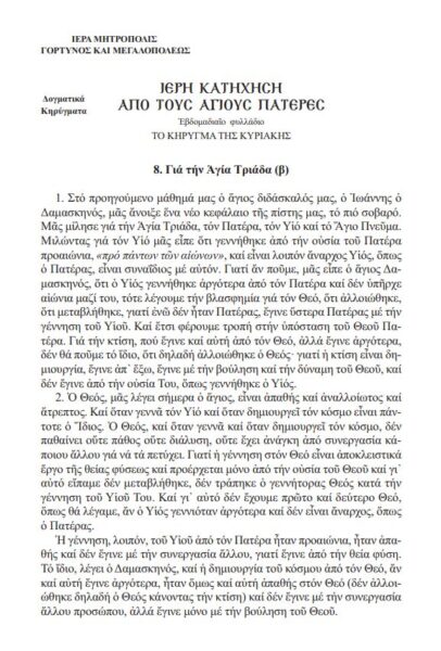 ΙΕΡΗ ΚΑΤΗΧΗΣΗ, Αριθμ. 8, (Δημοσίευση: 19 Οκτωβρίου 2019) εκ μέρους του Σεβασμιωτάτου Μητροπολίτου Γόρτυνος και Μεγαλοπόλεως, κ. Ιερεμίου.