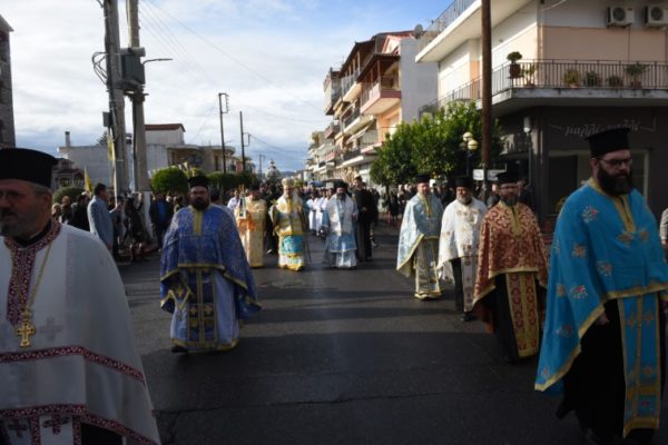Ακολούθως τελέσθηκε η Λιτάνευση των Ιερών Λειψάνων και της Εικόνος του εορταζομένου Αγίου, αλλά και του Ι. Λειψάνου της Αγίας Παρασκευής στους κεντρικούς δρόμους της πόλεως προς ευλογία και αγιασμό των κατοίκων.