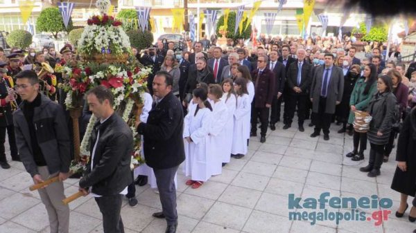 Μετά την Θεία Λειτουργία έγινε Λιτανεία της εικόνας του Αγίου Νικολάου στους δρόμους της πόλης με την συνοδεία της Φιλαρμονικής Μεγαλόπολης αλλά και μαθητών των σχολείων με τις σημαίες τους.