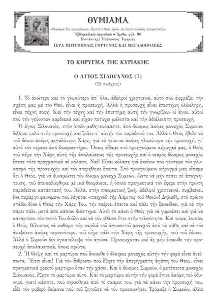 Επίκαιρο “ΘΥΜΙΑΜΑ” εκ μέρους του Σεβασμιωτάτου Μητροπολίτου Γόρτυνος και Μεγαλοπόλεως κ. Ιερεμίου, με θέμα τον Βίο του Αγίου Σιλουανού του Αθωνίτου (σε συνέχειες).