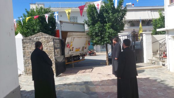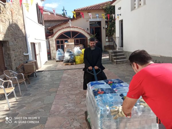 “Η αγάπη και μέριμνα του Αγίου Θηβών ήταν τόση μεγάλη πού ο ίδιος ήθελε να μεταφέρει την βοήθεια στην περιοχή μας”, αναφέρει η Μητρόπολη Γόρτυνος στην ανακοίνωση της.