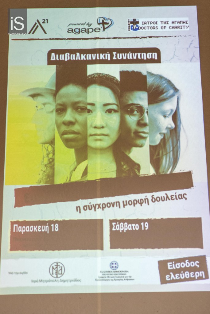 Εκπρόσωποι 20 περίπου Ιερών Μητροπόλεων από όλη την Ελλάδα τίμησαν με την παρουσία τους την Διαβαλκανική Συνάντηση με θέμα “ΕΜΠΟΡΙΑ ΑΝΘΡΩΠΩΝ – TRAFFICKING, Η ΣΥΓΧΡΟΝΗ ΜΟΡΦΗ ΔΟΥΛΕΙΑΣ”, που διοργάνωσαν η Οργάνωση Α21, η Αgape Hellas και το Ίδρυμα «Λειτουργοί Υγείας της Αγάπης», υπό την αιγίδα της Ιεράς Μητροπόλεως Δημητριάδος και του Γραφείου του Εθνικού Εισηγητή για την καταπολέμηση της εμπορίας ανθρώπων του ΥΠ.ΕΞ., στις 18 και 19 Ιανουαρίου στον Βόλο.
