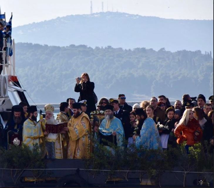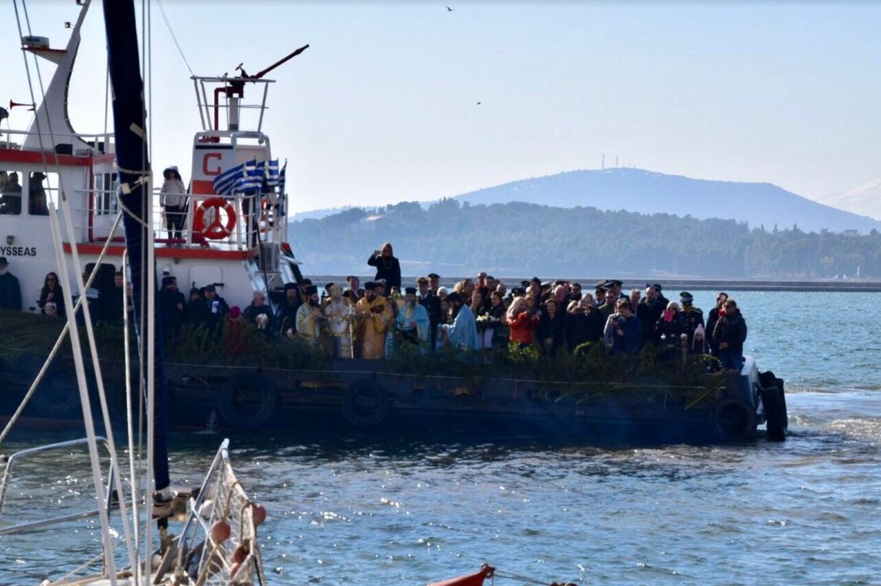 Μετά το πέρας του Αγιασμού, σχηματίστηκε λιτανευτική πομπή, υπό τους ήχους της Φιλαρμονικής του Δήμου Βόλου, που κατευθύνθηκε στην παραλία της πόλης. Εκεί, ο Σεβασμιώτατος, ο ιερός Κλήρος και οι Αρχές επιβιβάστηκαν επί ειδικώς ευτρεπισμένου πλοιαρίου, από του οποίου ο κ. Ιγνάτιος έριξε στη Θάλασσα το Σταυρό, αγιάζοντας τα ύδατα. Στη θάλασσα βούτηξαν οκτώ (8) νέοι της πόλης μας, γεμάτοι πίστη και ενθουσιασμό, που έλαβαν την ευλογία του Τιμίου Σταυρού από τα χέρια του Σεβασμιωτάτου. Στον καθιερωμένο εόρτιο χαιρετισμό του ο Σεβ. κ. Ιγνάτιος επεσήμανε ότι «η αλήθεια του γεννηθέντος Ιησού είναι η μόνη που μπορεί να ελευθερώσει την ψυχή του ανθρώπου… Ο Χριστός δέχεται να βαπτισθεί στον Ιορδάνη, από τον άνθρωπο, τον Ιωάννη, για να μας δείξει ότι υπάρχει ο δρόμος της αληθινής σοφίας και γνώσης, του φωτισμού του νου και της ψυχής… Γευθήκαμε, τούτες τις μέρες, την χαρά της νέας χρονιάς που ανέτειλε, στην ζωή μας, μιας χρονιάς σημαντικής. Θα χρειαστούμε, όσο ποτέ την πίστη και την ενότητά μας, τούτον τον καιρό, την αλληλεγγύη και την αγάπη μας. Να προσευχόμαστε ο Θεός να φωτίζει τον νου όλων όσοι έχουν μεγάλες ευθύνες στον τόπο μας. Ποθούμε την ειρήνη του Χριστού στην ζωή μας…». Ο Σεβασμιώτατος εξήρε το θάρρος όσων επέλεξαν να βουτήξουν στα παγωμένα νερά του Παγασητικού και φέτος, κρατώντας την παράδοση, ενώ συνεχάρη και εκείνους, που τις δύσκολες ημέρες της βαρυχειμωνιάς έκαναν στο ακέραιο το καθήκον τους, για να κρατήσουν την πόλη καθαρή και ανοικτή.