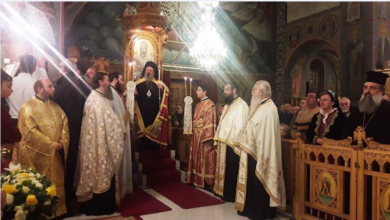 Στον Μέγα Πανηγυρικό Εσπερινό χοροστάτησε ο Σεβ. κ. Παύλος, τον οποίο αδελφικώς προσφώνησε ο Σεβ. κ. Ιγνάτιος. Ο Σεβασμιώτατος εξέφρασε την ευγνωμοσύνη της Τοπικής Εκκλησίας για την προσγενομένη τιμή προς την Μητρόπολή Δημητριάδος και συνεχάρη τον φιλοξενούμενο Αρχιερέα για τον πολύπλευρο και πολύμοχθο πνευματικό και εθνικό έργο που επιτελεί στην ακριτική Δράμα: «Σας διαβεβαιώνουμε ότι είμαστε σύμψυχοι στον μεγάλο αγώνα που κάνετε στην Μακεδονία για τα εθνικά μας δίκαια… Η παρουσία του Αγίου ανάμεσά μας, τούτες τις ημέρες, μας ενδυναμώνει και περικοσμεί την μεγάλη εορτή του Πολιούχου μας Αγίου Νικολάου και καταλλήλως μας προετοιμάζει για την μεγίστη εορτή των Χριστουγέννων».