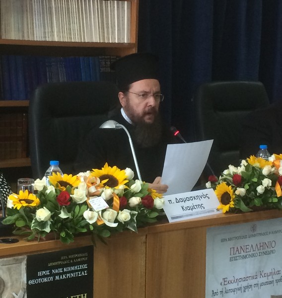 Στον εναρκτήριο χαιρετισμό του ο Σεβ. Μητροπολίτης Δημητριάδος κ. Ιγνάτιος αναφέρθηκε στην αφορμή αυτού του συνεδρίου, δηλαδή των εγκαινίων του Εκθετηρίου Εκκλησιαστικών Κειμηλίων της Ιεράς μας Μητροπόλεως στη Μακρινίτσα και τόνισε ότι πρόκειται «για ένα έργο-καρπό μακρόχρονης συλλογής και μελέτης πολύτιμων κειμηλίων, που οδήγησαν στη δημιουργία ενός ξεχωριστού μουσειακού χώρου… Ο πλούτος των εκθεμάτων του επιβεβαιώνει τον αστείρευτο πλούτο εκκλησιαστικών κειμηλίων, όχι μόνον από την περιοχή του Πηλίου, αλλά και την περιοχή της Αγιάς, καθώς και του Αλμυρού. Για μένα, αλλά και τους συνεργάτες μου, η διάσωση, η συντήρηση και η προβολή τους, με σύγχρονο τρόπο, θεωρήθηκε ιερή υποχρέωση, εκδήλωση μνήμης και σεβασμού προς τις γενεές των ευσεβών κληρικών και λαϊκών που τα δώρισαν στους Ναούς και τις Ιερές Μονές, παρακαταθήκη ευλαβείας και υψηλής αισθητικής προς τις επόμενες γενεές». Τέλος, ευχαρίστησε τον Δήμαρχο του Βόλου κ. Αχιλλέα Μπέο για την συμπερίληψη του συνεδρίου σε πρόγραμμα επιχορήγησης του Δήμου, τους εισηγητές και τους φορείς που συνδιοργάνωσαν το συνέδριο, δηλαδή το Τμήμα Ιστορίας και Κοινωνικής Ανθρωπολογίας του Πανεπιστημίου Θεσσαλίας, το Τμήμα Ιστορίας και Εθνολογίας του Δημοκριτείου Πανεπιστημίου Θράκης, την Ακαδημία Θεολογικών Σπουδών Βόλου και τον Φορέα Πολιτισμού «Μαγνήτων Κιβωτός», καθώς και τους Ιερείς και τα λαϊκά Στελέχη που εκπροσώπησαν Ιερές Μητροπόλεις. Ευχαρίστησε, κλείνοντας, τον στενό συνεργάτη του και εμπνευστή του μουσείου Αρχιμ. π. Δαμασκηνό Κιαμέτη, Πρωτοσύγκελλο της Ι. Μητροπόλεως για τον κόπο του και το άψογο αποτέλεσμα.