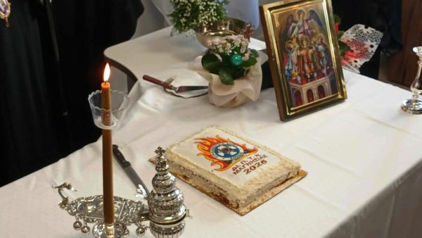 Στο τέλος, ο Σεβασμιώτατος ευλόγησε την πρωτοχρονιάτικη Βασιλόπιτα της Πυροσβεστικής Υπηρεσίας Βόλου.