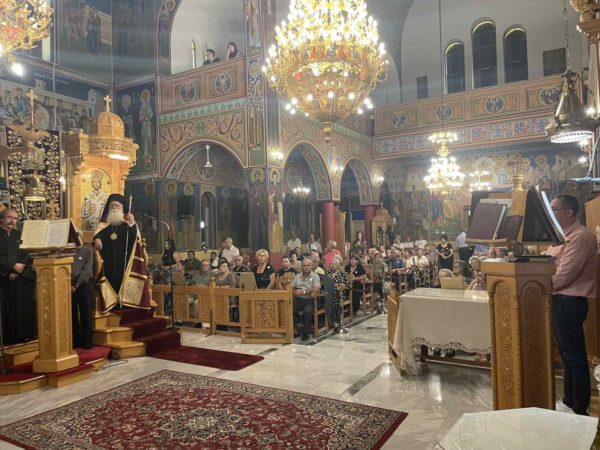 Ο Σεβασμιώτατος παρατήρησε ότι «ο φετινός εορτασμός είναι ιδιαίτερος, λόγω της μεγάλης καταστροφής, καθώς διανύουμε σταυρώσιμη περίοδο στον τόπο μας, ενώ κανείς δεν έμεινε ανεπηρέαστος από την συμφορά. Δεν περιμέναμε ποτέ να βιώσουμε μια τέτοια κατάσταση στην εποχή μας, που καυχάται για τις κατακτήσεις της επιστήμης και της τεχνολογίας. Έρχεται, όμως, ένα φυσικό φαινόμενο να διαψεύσει την σιγουριά μας και να μας φέρει σε ταπείνωση, για να ζητήσουμε το έλεος του Θεού και να συνεχίσουμε την ζωή μας…».