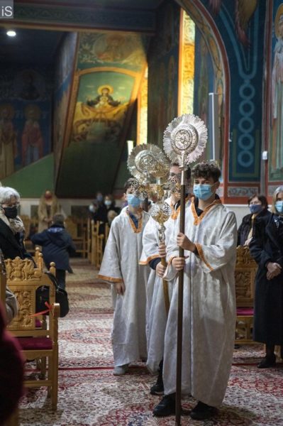 Στο τέλος της Θείας Λειτουργίας, ο Σεβασμιώτατος προεχείρησε σε Οικονόμο τον Εφημέριο του Ναού π. Χρήστο Αράπη.