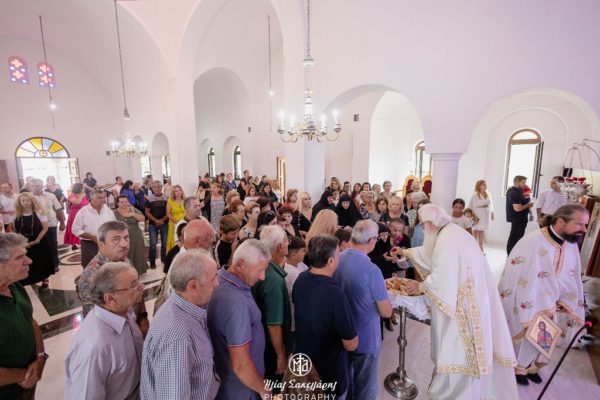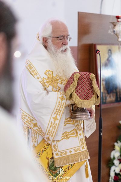 Στο τέλος της Θείας Λειτουργίας ο Σεβασμιώτατος ανέφερε ότι «απολαμβάνουμε τη χαρά σήμερα, γιατί η χαρά αυτή είναι καρπός ανθρώπων που θυσιάστηκαν όπως ο Θεός όρισε για να βιώσουμε και εμείς τη χαρά της Αναστάσεως».