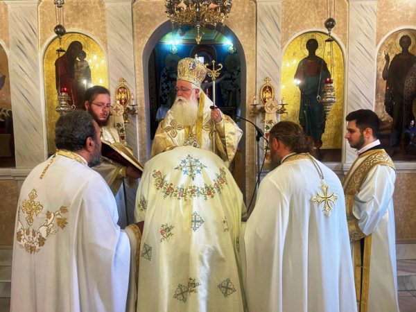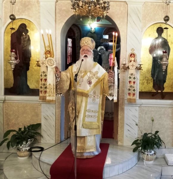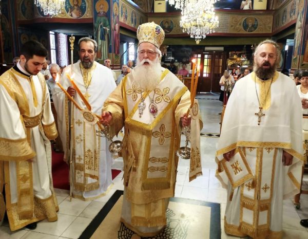 Στο τέλος της Θείας Λειτουργίας τελέστηκε Τρισάγιο στην μνήμη των θυμάτων της τουρκικής εισβολής, προς πενήντα ετών, στην Μεγαλόνησο Κύπρο. Ο Σεβασμιώτατος αναφέρθηκε στις νεανικές του μνήμες από την εποχή εκείνη, που οδήγησε στην Κυπριακή τραγωδία. «Οι ευθύνες εκείνων που είχαν τότε την ηγεσία, είναι τεράστιες», τόνισε. Αναφέρθηκε, όμως και στην στοχοποίηση του Αρχιεπισκόπου Κύπρου Μακαρίου, από ελλαδικούς εκκλησιαστικούς κύκλους, που ομιλούσαν για ασυμβίβαστο πολιτικής και εκκλησιαστικής εξουσίας στο πρόσωπό του, οδήγησαν στον διχασμό της Κυπριακής Ιεράς Συνόδου. «Γι’ αυτό, ομιλώ πάντοτε για την ενότητα, που ξεκινά από το εκκλησιαστικό σώμα. Όποτε υπήρξε διχασμός στην χώρα μας, προηγήθηκε εκκλησιαστικός διχασμός, με τραγικά αποτελέσματα, όπως και η Μικρασιατική καταστροφή. Δυστυχώς, ανάλογοι κύκλοι, επενδύοντας στον φανατισμό, επεδίωξαν και στις μέρες μας να διχάσουν το εκκλησιαστικό σώμα. Να έχουμε τα μάτια μας ανοικτά, για να διατηρούμε την ενότητα. Μπορεί να υπάρχουν διαφορετικές απόψεις και προσεγγίσεις, αλλά όποιος ξεχωρίσει τον εαυτό του και επιχειρήσει να διχάσει την Εκκλησία, διακυβεύει την ενότητα του Γένους και της Πατρίδας. Και όποιος διακυβεύσει την ενότητα Εκκλησίας και Πολιτείας, το ίδιο σφάλμα διαπράττει. Ο χωρισμός είναι αρνητικό στοιχείο και οδηγεί σε τραγικά αποτελέσματα, γιατί είναι, εκ των πραγμάτων, διχαστικός. Η Κύπρος είναι Ελλάδα και η Ελλάδα Κύπρος. Γι’ αυτό, προσευχόμαστε να υπάρξει βιώσιμη λύση: μία Κύπρος, ένας λαός».