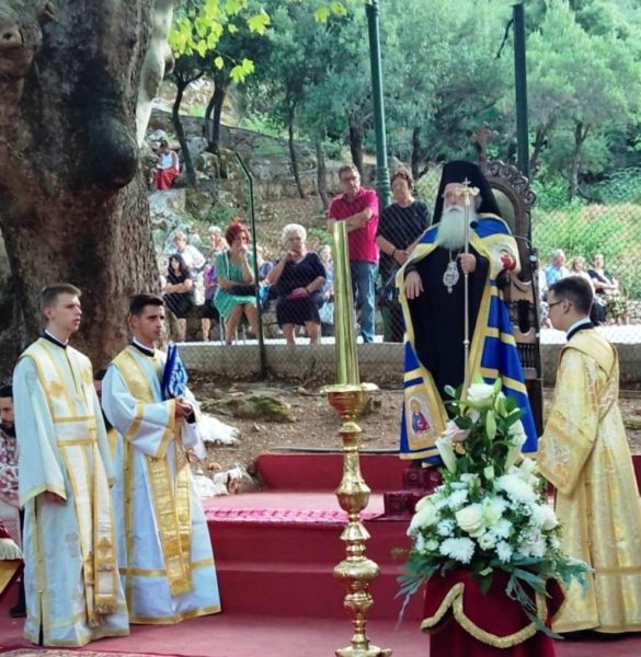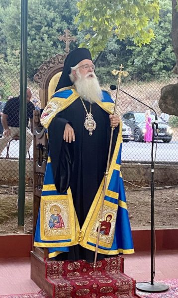 Στο κήρυγμά του, κατά τον Μέγα Πανηγυρικό Εσπερινό, ο Σεβασμιώτατος ανάφερε χαρακτηριστικά ότι η σημερινή εορτή είναι μία «Πηγή χαράς, αγαλλιάσεως και παραμυθίας γιατί μας δίνεται μία ακόμη ευκαιρία να εορτάσουμε αυτή που είχε στα σπλάχνα Της, την “Όντως Ζωή”. Έχουμε μαζί μας την Πλατυτέρα των Ουρανών, αυτή που απλώνει τα χέρια της και αγκαλιάζει ολόκληρο τον τόπο και όλους εμάς…Έχουμε κοντά μας Μητέρα Αληθινή που βρίσκεται κοντά στα παιδιά της και το νιώθουμε αυτό καθημερινά γιατί και αυτή έζησε τη χαρά όταν έλαβε το μήνυμα από τον Αρχάγγελό ότι θα φέρει στο κόσμο τον Μονογενή Υιό και Λόγο του Θεού… Είναι αυτή που έζησε τη χαρά του πρώτου θαύματος του Υιού της στον Γάμο της Κανά και συνέβαλε στο να παρατεθεί η χαρά και ευλόγησε τον γάμο και την οικογένεια σε μια εποχή που όλοι έχουν βαλθεί να τη διαλύσουν, προβάλλοντας ό,τι μπορούν πιο αισχρό, θέλουν να εκμηδενίσουν το ακριβό αυτό κύτταρο της κοινωνίας, που εγγυάται την ενότητα του λαού μας. Θέλουν ακόμα και με ανίερα νομοθετήματα να εξευτελίσουν αυτό που είναι για τον Ορθόδοξο και τον Έλληνα η Οικογένεια, δηλ. ο Γάμος ανδρός και γυναικός και η συγκρότηση οικογένειας με παιδιά, Μυστήριο μέγα και ιερό, γιατί είναι η συνέχεια της δημιουργίας του Ίδιου του Θεού… Είναι η Παναγία που ένωσε μαθητές και μαθήτριες και είναι αυτή που πάντοτε ενώνει και ποτέ δεν διχάζει.. Είναι αυτή που μας καλεί όλους σε ενότητα γύρω από το προσώπου του Ιησού Χριστού και γίνεται Οδηγήτρια, σε μία ζωή ενότητας, αγάπης, προσφοράς και θυσίας.»