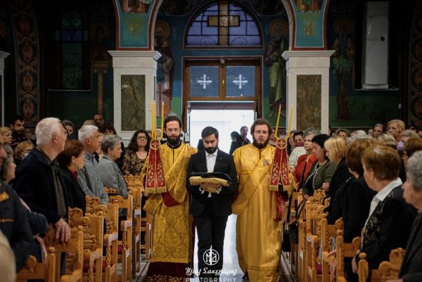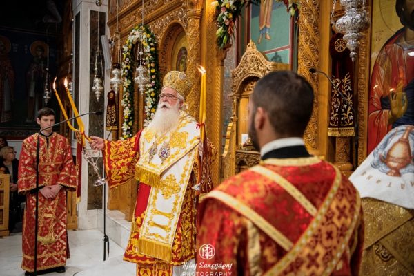 Μίλησε για την παρουσία του στην χορεία των Αναγνωστών και Ιεροπαίδων και την προσφορά του στο κατηχητικό έργο της Εκκλησίας μας. Χαιρέτησε την ωριμότητα της ηλικίας, την πορεία του στην τοπική κοινωνία, την δημιουργία δικής του οικογένειας, μαζί με την εκλεκτή του σύζυγο: «Αυτή η οικογένεια θα είναι, πλέον, μια μαρτυρία, γιατί έχουμε ανάγκη από οικογένειες με πνεύμα Θεού, αφού, στις μέρες μας κινδυνεύει ο θεσμός της οικογένειας στην πατρίδα μας. Αλίμονο, την ώρα που όλα γκρεμίζονται γύρω μας, από την βία και τον πόλεμο, στην πατρίδα μας βαλθήκαμε ν’ αλλάξουμε το κύτταρο της Ελληνορθόδοξης Οικογένειας. Όμως, θα παραμείνουμε σταθεροί. Ο αγώνας μας δεν θα πάει χαμένος».