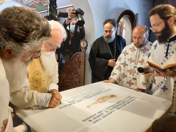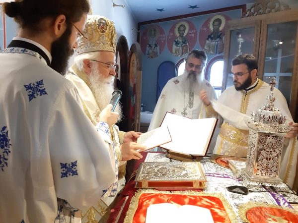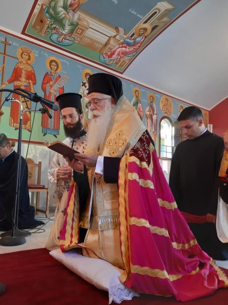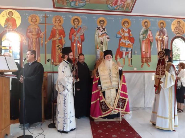 Τέλος ο Σεβασμιώτατος συνεχάρη όσους είχαν την τόλμη, σε δύσκολους καιρούς, να ανοικοδομήσουν το Ναό κι έτσι φθάσαμε στην ιστορική αυτή ημέρα να χαιρόμαστε για το μεγάλο αυτό δώρο του Θεού στη ζωή μας.