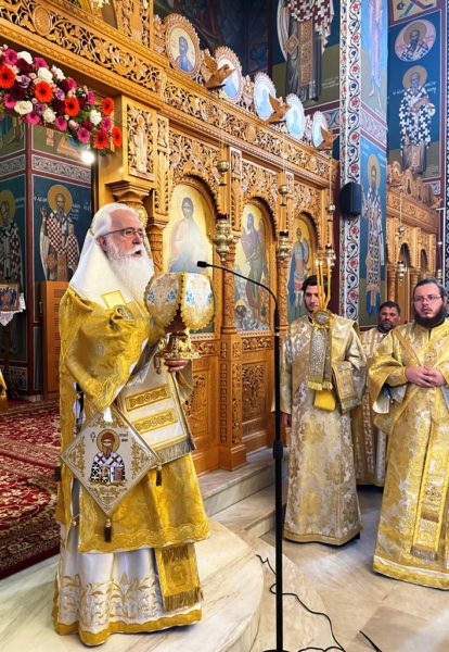 Ανήμερα της εορτής ο Σεβασμιώτατος λειτούργησε στον ίδιο Ναό. Τον θείο λόγο κήρυξε ο Αρχιμ. Αμφιλόχιος Μήλτος, Γραμματέας της Ιεράς Μητροπόλεως. Πριν το τέλος της Θείας Λειτουργίας o Σεβασμιώτατος, ευχαρίστησε όλους όσους συνετέλεσαν στην πανήγυρι του Ιερού Ναού. Ευχήθηκε σε όλους, «να εορτάσουμε τα Χριστούγεννα με Χριστό, χωρίς να στερηθούμε τα ήθη και τα έθιμα της πατρίδας μας αλλά μη λησμονώντας και περιφρονώντας την ουσία της Μεγάλης εορτής.»