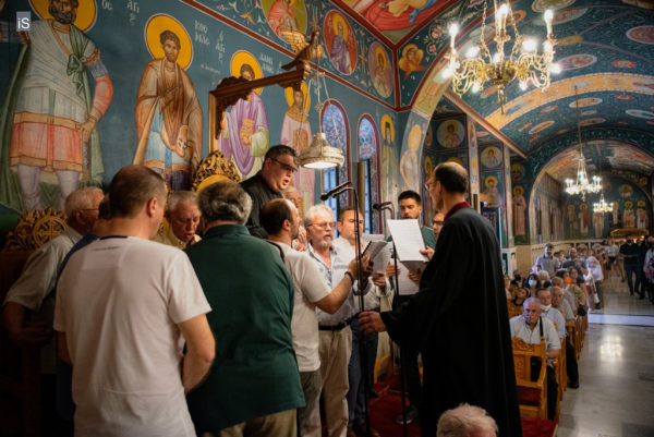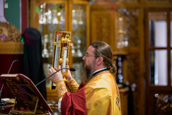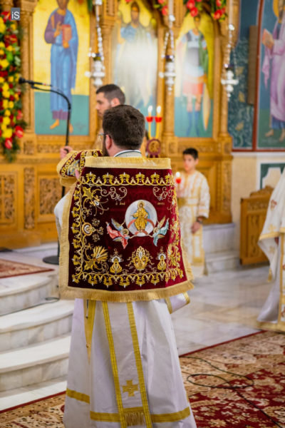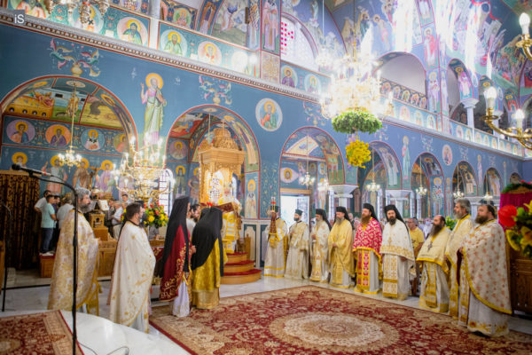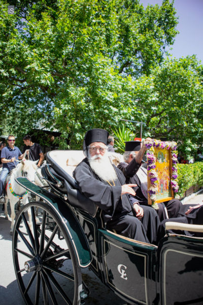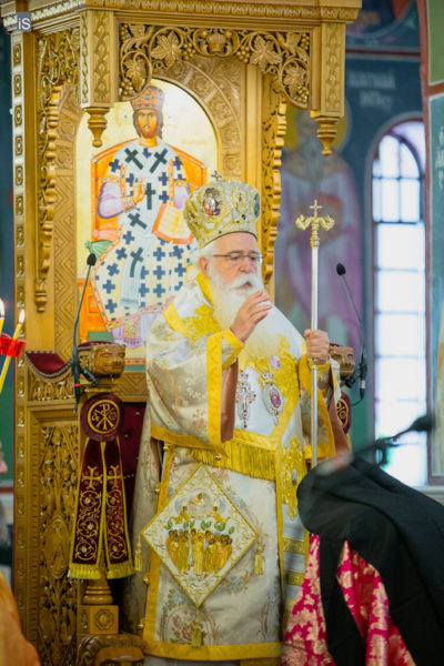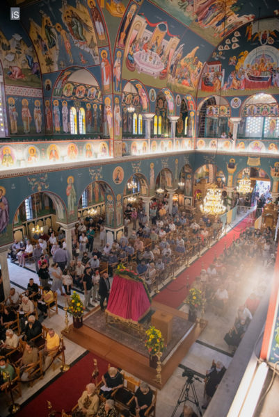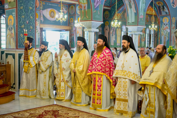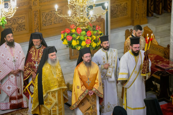 Στο τέλος της Θείας Λειτουργίας ο Σεβασμιώτατος συνεχάρη τον Προϊστάμενο του Ναού και Πρωτοσύγκελλο της Μητροπόλεως, Αρχιμ. Δαμασκηνό Κιαμέτη και τους συνεργάτες του, για την άψογη προετοιμασία και διεξαγωγή της Πανηγύρεως.