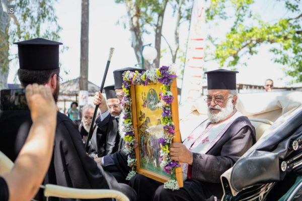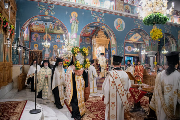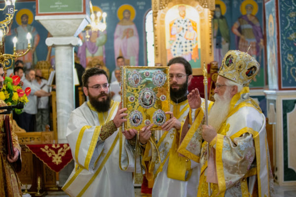 Στο κήρυγμά του ο Σεβασμιώτατος εξέφρασε την χαρά του για την ελεύθερη και μαζική συμμετοχή όλων στην φετινή πανήγυρη, «έχοντας διέλθει από μία περίοδο μεγάλου πόνου, που οι συνθήκες μας στέρησαν την χαρά της μεγάλης συνάξεως». Επεσήμανε δε την σημασία που έχει ο εορτασμός αυτός μέσα σε έναν Ναό «που διακρίνεται, πλέον, από άπειρο κάλλος και μας κάνει να νιώθουμε ότι είναι όντως ο ουρανός πάνω στη γη. Όμως, την χαρά αυτή υπερβαίνει η χαρά της Αναλήψεως, εκείνη που ένιωσαν οι Μαθητές, όταν, βλέποντας τον Κύριο να αναλαμβάνεται στους ουρανούς, κατενόησαν όλα τα γεγονότα της επί γης ζωής Του και γέμισε η ψυχή τους από αγαλλίαση, παρά τον σωματικό αποχωρισμό. Πλέον, γνωρίζουν τί τους περιμένει, έχουν βεβαιότητα ότι ο Αναστημένος Χριστός, όπως τους διαβεβαίωσε, θα είναι πάντα μαζί τους, διά της ελεύσεως και ενεργείας του Αγίου Πνεύματος».