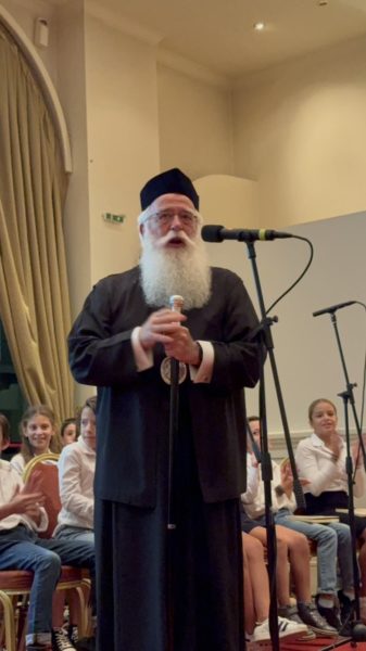 Στον σύντομο χαιρετισμό του ο Σεβασμιώτατος αφού ευχαρίστησε τον κ. Σούρλα για τη συγγραφή του βιβλίου τόνισε ότι : «Αν οι δύο μεγάλοι αυτοί πρωτοπόροι της Ελλάδας βίωναν σήμερα γεγονότα όπως της Γλυφάδας θα θλίβονταν.