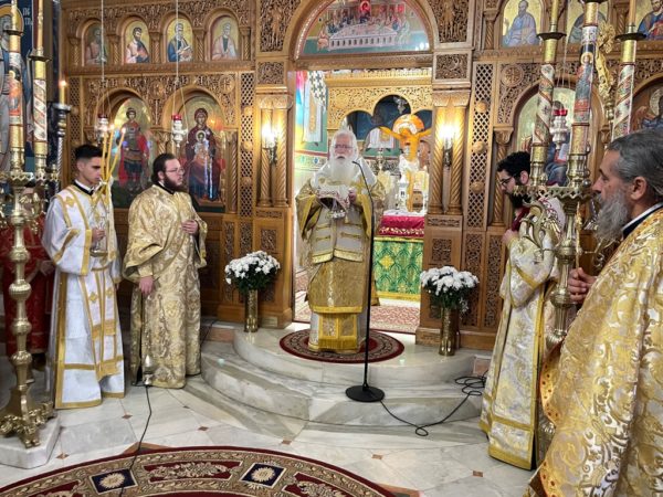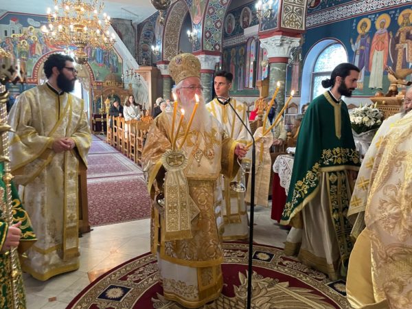 Ανήμερα της εορτής ο Σεβασμιώτατος λειτούργησε, κατά το έθος, στον Ιερό Ναό Αγίου Γεωργίου Νέας Αγχιάλου, όπου τέλεσε το μνημόσυνο της προσφάτως θανούσης μητέρας του εορτάζοντος Προϊσταμένου του Ναού Πρωτ. Αθανασίου Μακαντάση.