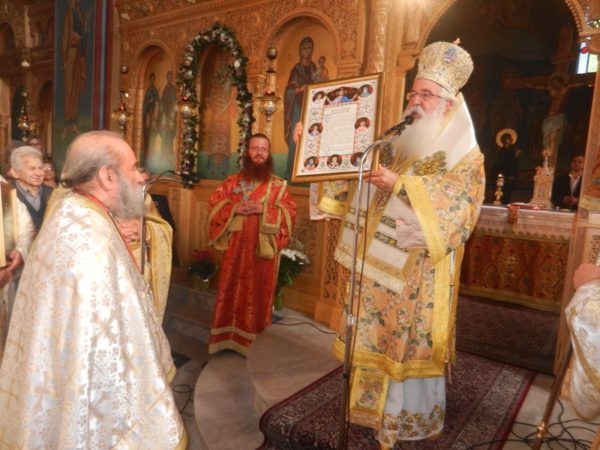 Κατά την Θεία Λειτουργία της Πανηγύρεως του Αγίου Νεκταρίου, τον Νοέμβριο του 2012, ο Σεβασμιώτατος Μητροπολίτης Δημητριάδος κ. Ιγνάτιος, είχε την ευκαιρία να τιμήσει τον εκλιπόντα, όντας επί χρόνια Προϊστάμενος και κτήτορας του Ιερού Ναού Αγίου Νεκταρίου Νέας Ιωνίας. Του απένειμε την Ανώτατη Τιμητική Διάκριση της Τοπικής Εκκλησίας, τον Χρυσό Σταυρό μετά Διπλώματος. Στην ομιλία του, εκθείασε το έργο του πολιού Πρεσβυτέρου και τον ευχαρίστησε για την πολυετή θυσιαστική του προσφορά στην ενορία του Αγίου Νεκταρίου. Στο πρόσωπό του, επίσης, τίμησε και όλους όσοι συνέβαλαν στην ανέγερση του Ιερού Ναού και στάθηκαν κοντά του, τα προηγούμενα χρόνια, για την πραγματοποίηση του πολύπλευρου ενοριακού έργου.