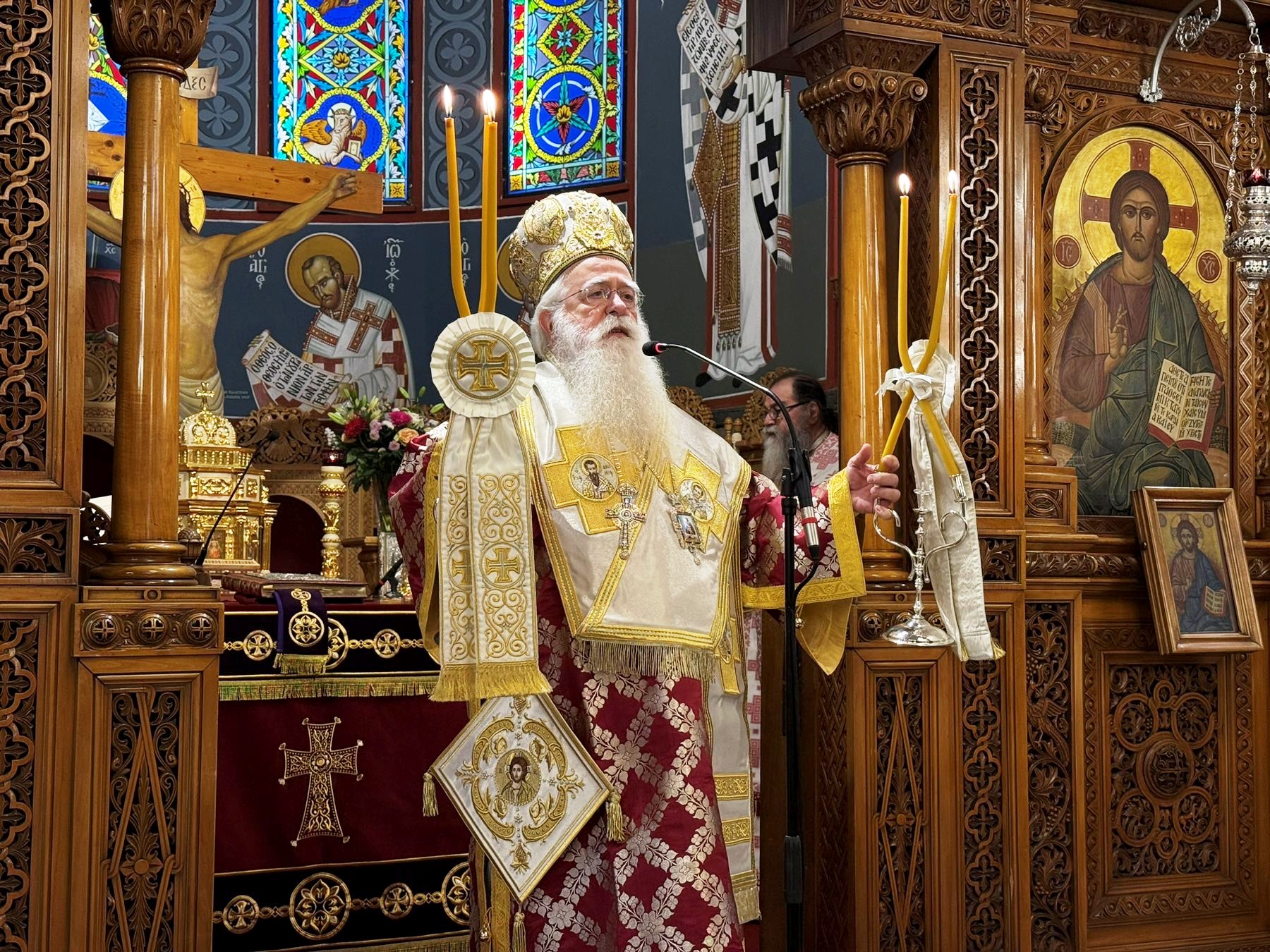 Τόνισε, μάλιστα, ότι ο π. Θεόδωρος και ο πολιός Γέροντας Πρωτ. Βασίλειος Ακριβόπουλος, είναι πλέον τα δύο γερά πνευματικά αγκωνάρια της ενορίας, παραδείγματα ιερατικού ήθους και αδιάλειπτης προσροφάς για τους νεωτέρους. Ζήτησε δε από τον Σεβασμιώτατο να απονείμει στον π. Θεόδωρο, εκ μέρους της ενορίας, επιστήθιο Ιερατικό σταυρό και την ιερά Εικόνα του Πολιούχου μας Αγίου Νικολάου, εις ένδειξιν τιμής και ευγνωμοσύνης.
