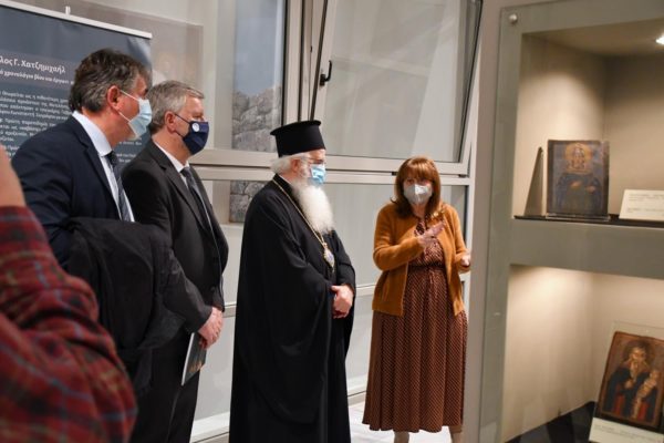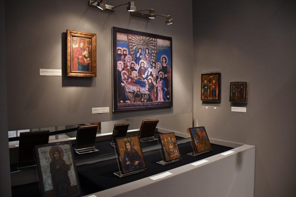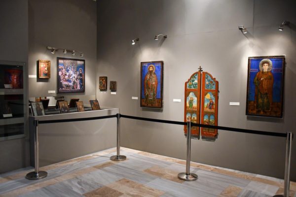 Η έκθεση περιλαμβάνει 17 έργα του λαϊκού ζωγράφου Θεόφιλου Χατζημιχαήλ, που αντλούν τη θεματογραφία τους από την εκκλησιαστική ζωγραφική παράδοση και αποτελεί την πρώτη προσπάθεια συγκεντρωτικής παρουσίασης αντιπροσωπευτικών θρησκευτικών έργων του μεγάλου λαϊκού ζωγράφου, ο οποίος είναι γνωστός κυρίως από τις κοσμικές τοιχογραφίες που φιλοτέχνησε κυρίως στο Πήλιο και τη Λέσβο. Θα παραμείνει ανοικτή ως τις 20 Μαρτίου 2022.