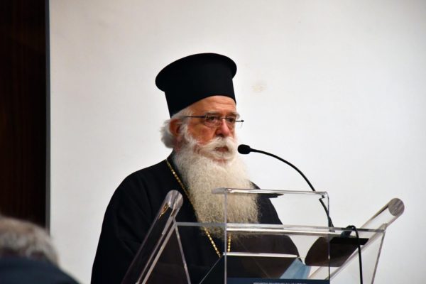Στο χαιρετισμό που απηύθυνε, ο Μητροπολίτης κ. Ιγνάτιος τόνισε ότι «ο Θεόφιλος μπόρεσε να εκφράσει σε μια παράδοξη εποχή αυτό, που είναι ο πολιτισμός μας και η πίστη μας. Σήμερα το έχουμε πολύ περισσότερο ανάγκη, για να μπορέσουμε να δούμε το μέλλον, μαζί με τον “άλλον”, ο οποίος σήμερα είναι δίπλα μας, είναι μαζί μας, είναι κοντά μας. Για μας ο άλλος παραμένει μια ζωντανή εικόνα του Θεού». Και συνέχισε «ο ζωγράφος Θεόφιλος δούλεψε με πολύ κόπο, πόνο, μεράκι και αγάπη. Ο Θεόφιλος δεν μιμείται· δίνει τον εαυτό του. Εκφράζει αυτό που έχει η ψυχή του, και το εκφράζει αυθεντικά. Θέλω να πιστεύω ότι αυτή η έκθεση είναι ένας καθρέφτης, όπου μπορούμε να αναμετρηθούμε με το αν εμείς είμαστε ικανοί, όπως τότε αυτός, να εκφράσουμε την εποχή μας, βασισμένοι στις ρίζες μας, αλλά με την προοπτική του μέλλοντος. Με σεβασμό στο κάθε πρόσωπο· κρατώντας την ταυτότητα μας, αλλά χωρίς να αρνηθούμε και ότι θα συμπορευτούμε με άλλες ταυτότητες. Αυτό είναι η πρόκληση».