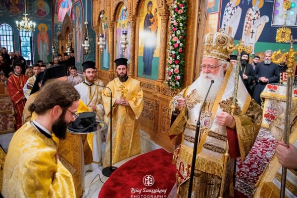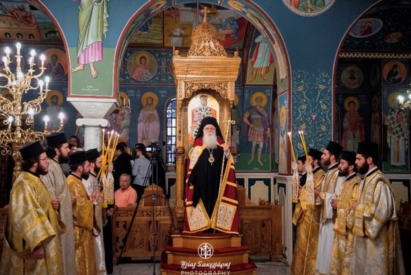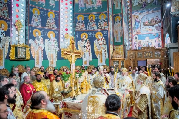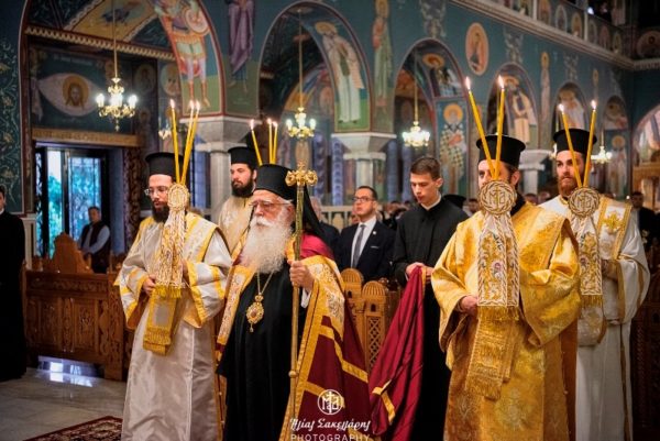 Της Πολυαρχιερατικής Θείας Λειτουργίας προεξήρχε ο Σεβασμιώτατος Μητροπολίτης Δημητριάδος κ. Ιγνάτιος, συλλειτουργούντων των Σεβασμιωτάτων Μητροπολιτών Κερκύρας, Παξών και Διαποντίων Νήσων κ. Νεκταρίου, Σμύρνης κ. Βαρθολομαίου και Λαρίσης & Τυρνάβου κ. Ιερωνύμου.