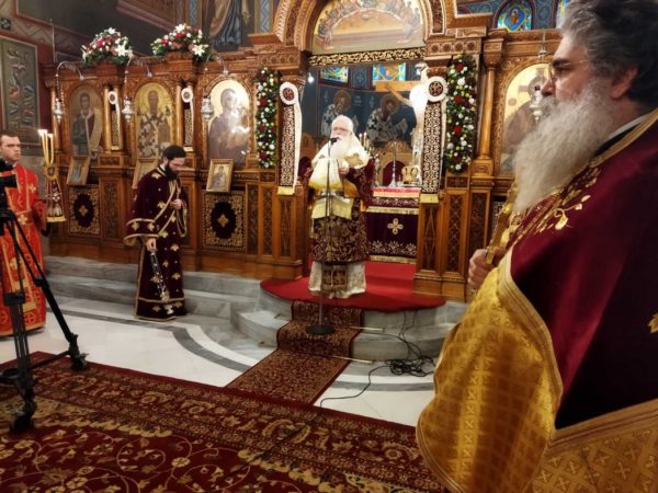 Κατά την Θεία Λειτουργία αναγνώσθηκε το Χριστουγεννιάτικο Μήνυμα του Μητροπολίτου μας, ο οποίος, προ του «Δι’ ευχών», ζήτησε από τον λαό μας να στρέψουμε τον νου και την καρδιά μας στους ασθενείς αδελφούς μας, που δοκιμάζονται στο κρεβάτι του πόνου και στους αναγκεμένους.
