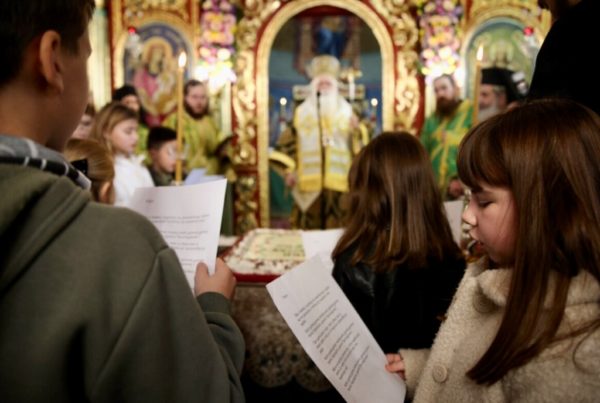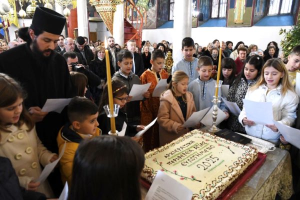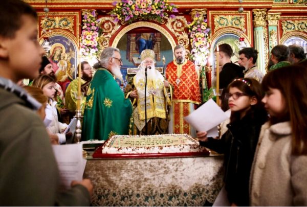 Προχείρισε, επίσης, σε Αναγνώστη και τον μαθητή της Γ΄ Λυκείου Χρήστο Καρακωστόπουλο. Ακολούθως, ευλόγησε την πρωτοχρονιάτικη Βασιλόπιτα της Αρχιερατικής Περιφέρειας Αγιάς, ενώ τα παιδιά έψαλαν τα κάλαντα της πρωτοχρονιάς.