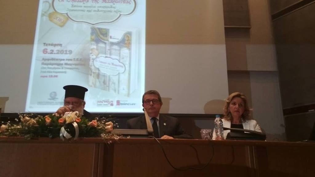 Με μεγάλη επιτυχία, πραγματοποιήθηκε την Τετάρτη 6/2 η παρουσίαση της Επετειακής έκδοσης – Ημερολογίου 2019, «Οι θησαυροί της Μακρινίτσας» στο Τ.Ε.Ε. Βόλου. Στην εκδήλωση, που διοργάνωσε ο φορέας πολιτισμού της Ιεράς μας Μητροπόλεως «Μαγνήτων Κιβωτός, για τη διάσωση του πολιτιστικού αποθέματος», παραβρέθηκαν οι Σεβ. Μητροπολίτες Δημητριάδος κ. Ιγνάτιος και Βρεσθένης κ. Θεόκλητος, η Αντιπεριφερειάρχης Μαγνησίας και Βορείων Σποράδων κ. Δωροθέα Κολυνδρίνη, η εκπρόσωπος του Δημάρχου Βόλου κ. Γεωργία Μποντού – Τοκαλή, ο Θεματικός Περιφερειάρχης Θεσσαλίας κ. Γιώργος Καλτσογιάννης, η Πρόεδρος της τοπικής κοινότητας Κερασιάς κ. Αντωνία Χασιώτη, Περιφερειακοί και Δημοτικοί σύμβουλοι, ο Α΄ υποδιευθυντής της Διεύθυνσης Αστυνομίας Μαγνησίας, Βασίλης Καραΐσκος, ο Πλοίαρχος Λ.Σ. Εμμανουήλ Κανάλης, Διοικητής της 4ης ΠΕ.ΔΙ.ΛΣ – ΕΛ. ΑΚΤ. Εκπρόσωποι Στρατιωτικών Αρχών, Σωματείων και φορέων πολιτισμού της περιοχής μας.