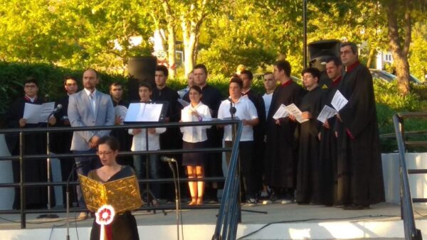 Την έναρξη της εκδήλωσης έκανε ο χορός των ιεροψαλτών, με υπεύθυνο χοράρχη τον κ. Χρήστο Μιχάλη, πρωτοψάλτη του Ιερού Ναού των Αγίων Αποστόλων Πέτρου και Παύλου, Νέας Ιωνίας, που έψαλε εκκλησιαστικούς Βυζαντινούς ύμνους από τις Ιερές Ακολουθίες της Αγίας Κυριακής, προστάτιδας της περιοχής αυτής.