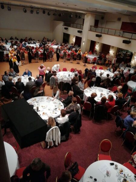 Διακόσιοι και πλέον προσκεκλημένοι, κληρικοί και λαϊκοί, απήλαυσαν ένα όμορφο απογευματινό στην κεντρική αίθουσα του ξενοδοχείου, που δωρεάν προσφέρθηκε από τη διεύθυνση, μέσα από ένα όμορφο μουσικοχορευτικό πρόγραμμα, που παρουσίασαν η Χορωδία και το Χορευτικό Συγκρότημα του Ομίλου Ερευνών Πηλίου και το Χορευτικό του Πολιτιστικού Συλλόγου Αγίου Γεωργίου Δράκειας.