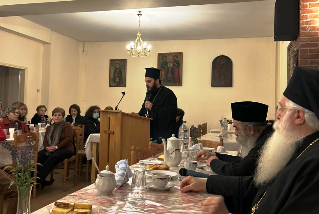 Κατά την έναρξη της συνάντησης, ο Σεβασμιώτατος ευλόγησε τη Βασιλόπιτα του Δικτύου Συνδρομητών της Ενορίας. Ακολούθως, ο Προϊστάμενος του Ιερού Ναού, Πρωτοπρεσβύτερος π. Σταύρος Σωτηρόπουλος, καλωσόρισε θερμά τον Σεβασμιώτατο και παρουσίασε τη ζωή και τη λειτουργία της Ενορίας. Ιδιαίτερη αναφορά έκανε στη σύντομη ιστορία του Ναού και στους ανθρώπους που κοπίασαν ώστε, από τις δύσκολες πρώτες συνθήκες και την «παράγκα», να ανεγερθεί ο Ιερός Ναός καθώς και το τετραώροφο Πνευματικό Κέντρο της Ενορίας. Τόνισε το πνεύμα συνεργασίας που αναπτύσσεται μεταξύ των συνεφημερίων, των επιτρόπων και των εθελοντών, υπογραμμίζοντας ότι η Ενορία των Αγίων Αποστόλων Πέτρου & Παύλου πορεύεται ως μία ενωμένη οικογένεια, με κοινό προσανατολισμό τη διακονία του λαού του Θεού και τη ζωντανή παρουσία της Εκκλησίας στην καθημερινότητα των πιστών. Παράλληλα, αναφέρθηκε στη σημασία της συνεχούς επικοινωνίας με τα ενοριακά στελέχη, στη φροντίδα των δοκιμαζόμενων αδελφών, στη στήριξη της οικογένειας μέσω της ενοριακής Σχολής Γονέων υπό τον π. Δούκα, καθώς και στη μέριμνα για τη νεότητα, η οποία αποτελεί την ελπίδα και το μέλλον της Εκκλησίας.