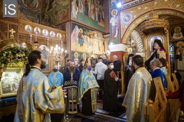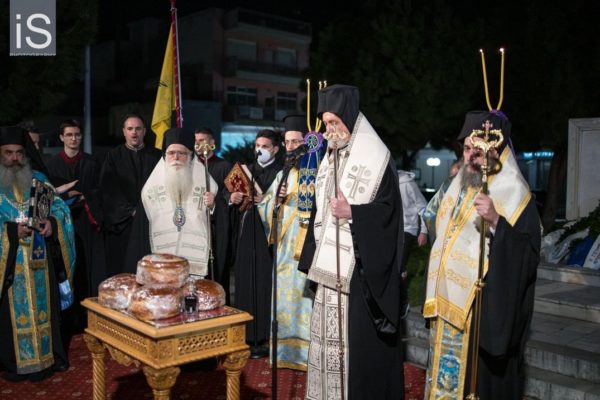Ακολούθησε η αρτοκλασία στο προαύλιο του Ναού και η λιτάνευση της Ιεράς Εικόνος του Ευαγγελισμού πέριξ αυτού.