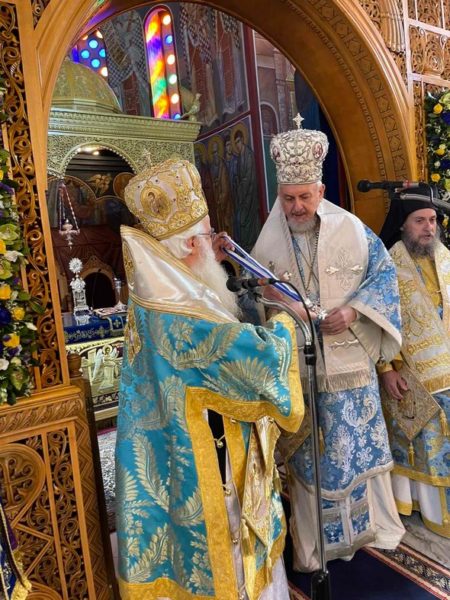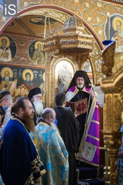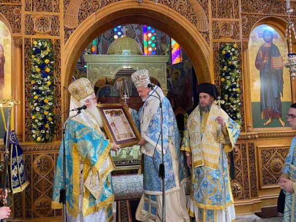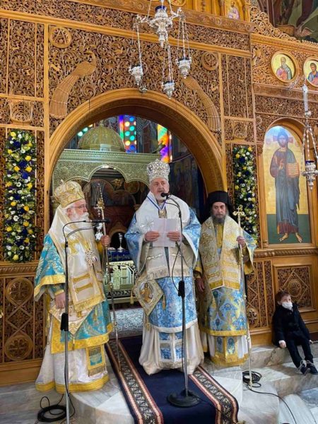 Μετέφερε, επίσης, «την ευλογία της Μητρός Εκκλησίας προς το πλήρωμα της Ιεράς Μητροπόλεως, τις ευχές του Οικουμενικού Πατριάρχου μας κ. Βαρθολομαίου, προκειμένου», όπως τόνισε, «να λάβω από εσάς τις ευχές της εγνωσμένης αγάπης και του σεβασμού του Δεσπότου σας προς την πηγή του Γένους μας».