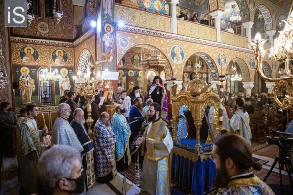 Μετέφερε, επίσης, «την ευλογία της Μητρός Εκκλησίας προς το πλήρωμα της Ιεράς Μητροπόλεως, τις ευχές του Οικουμενικού Πατριάρχου μας κ. Βαρθολομαίου, προκειμένου», όπως τόνισε, «να λάβω από εσάς τις ευχές της εγνωσμένης αγάπης και του σεβασμού του Δεσπότου σας προς την πηγή του Γένους μας».