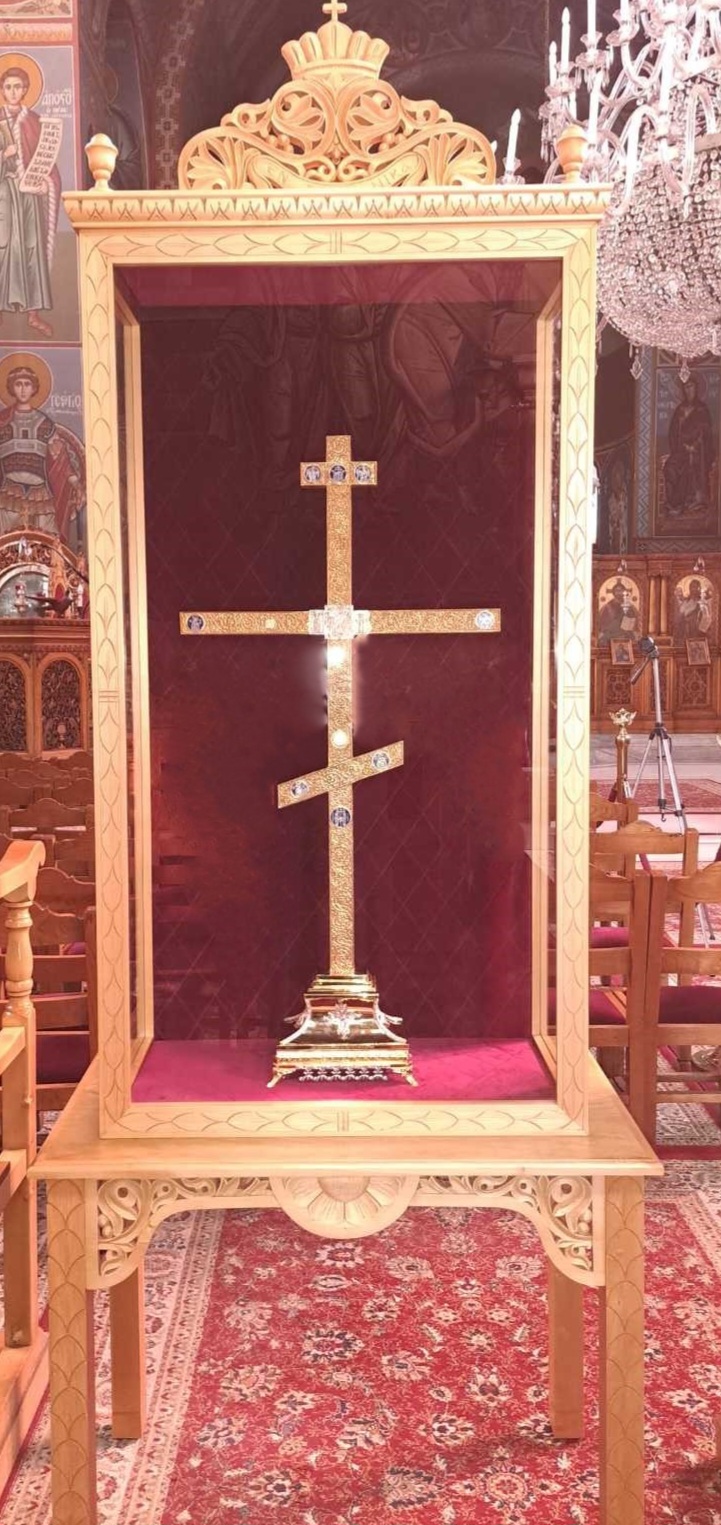 Κατά την διάρκεια της Αγρυπνίας θα λιτανευτεί και θα τεθεί σε προσκύνηση το αντίγραφο του Σταυρού του Μεγάλου Κωνσταντίνου, που φυλάσσεται στον Ναό και δώρισε προς ετών η Ιερά Μεγίστη Μονή Βατοπαιδίου Αγίου Όρους.