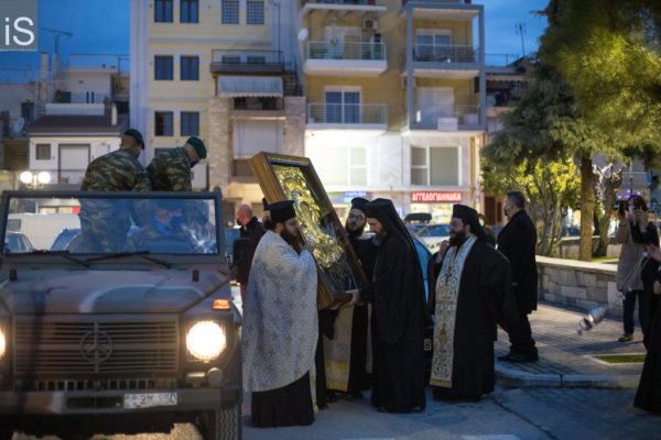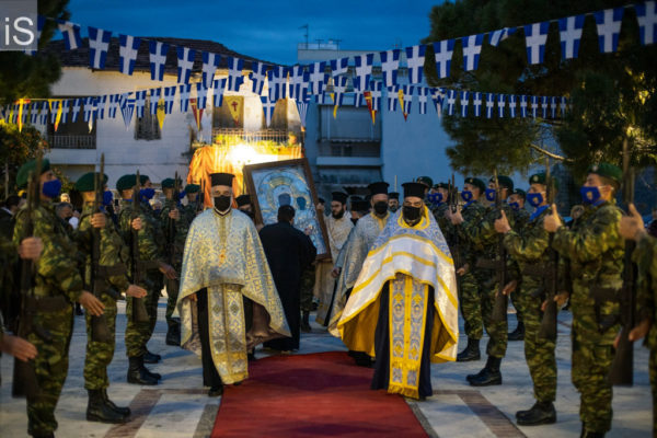 Με τιμές από στρατιωτικό άγημα η υποδοχή της εικόνας της Παναγίας Βουρλιώτισσας